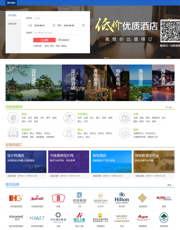藝龍旅行網提供國內631多個城市,80多個品牌,包括洲際、萬豪、雅高、喜達屋等國際知名酒店品牌,以及如家、錦江之星、格林豪泰等經濟型商務連鎖酒店,超過3萬家酒店的在線預訂和電話預訂服務。在線預訂酒店返現高達20%。