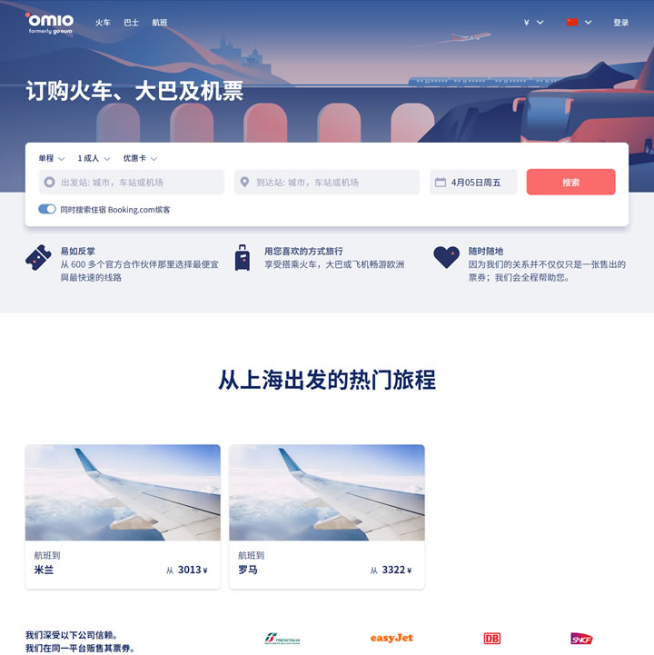 Omio中國:https://www.omio.cn