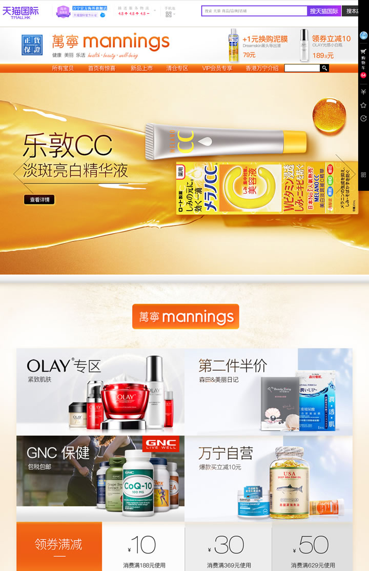 香港萬寧官方海外旗艦店:https://manningshk.tmall.hk