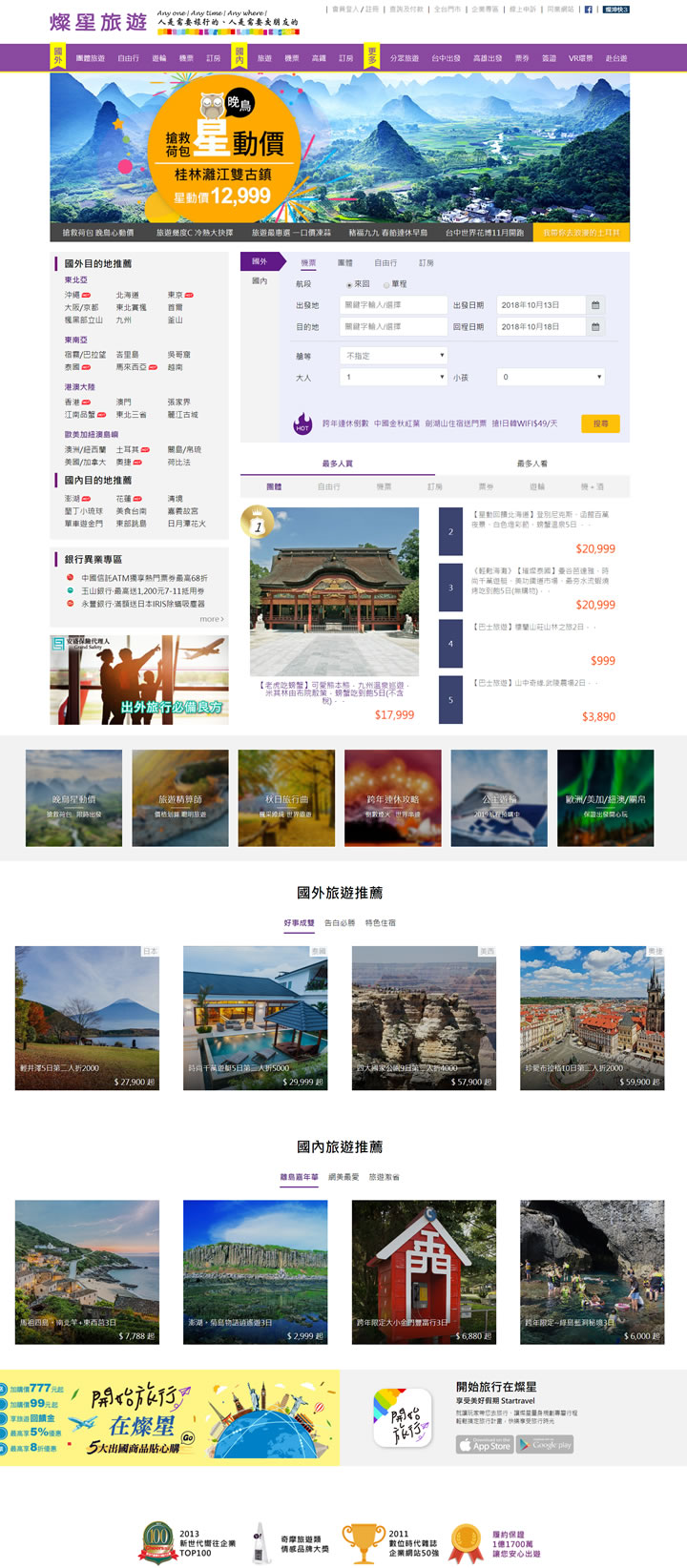 Anyone! Anytime! Anywhere! 讓熱愛旅行的你輕松選到最符合自己需求的旅游方式!不論國內國外、團體旅游 自由行 機票 訂房 票券,在燦星旅游一站購足,讓你好好享受美好假期。