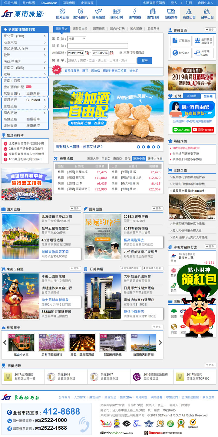 東南旅游網提供專業旅行社旅游規劃,國內外團體旅游、機票、飯店訂房、自由行、高鐵旅游、和運租車假期、旅游票券、護照簽證等全面旅行社服務,不論您是全家親子旅游、蜜月旅行、商務出差、企業員工旅游,東南旅游提供您最專業的旅游諮詢與優惠行程, 帶您輕松玩遍全世界!