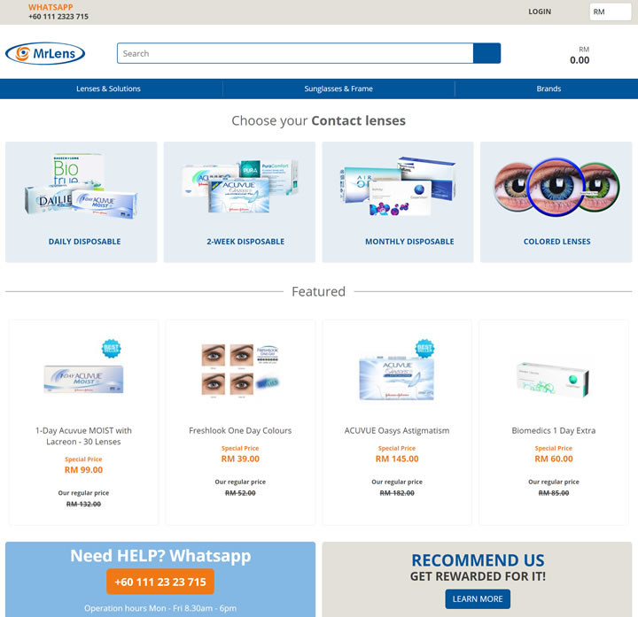 MrLens.com.my是馬來西亞最大的在線隱形眼鏡商店,我們為男士和女士提供各種主要品牌的隱形眼鏡、處方眼鏡、太陽鏡、品牌和設計師鏡架。