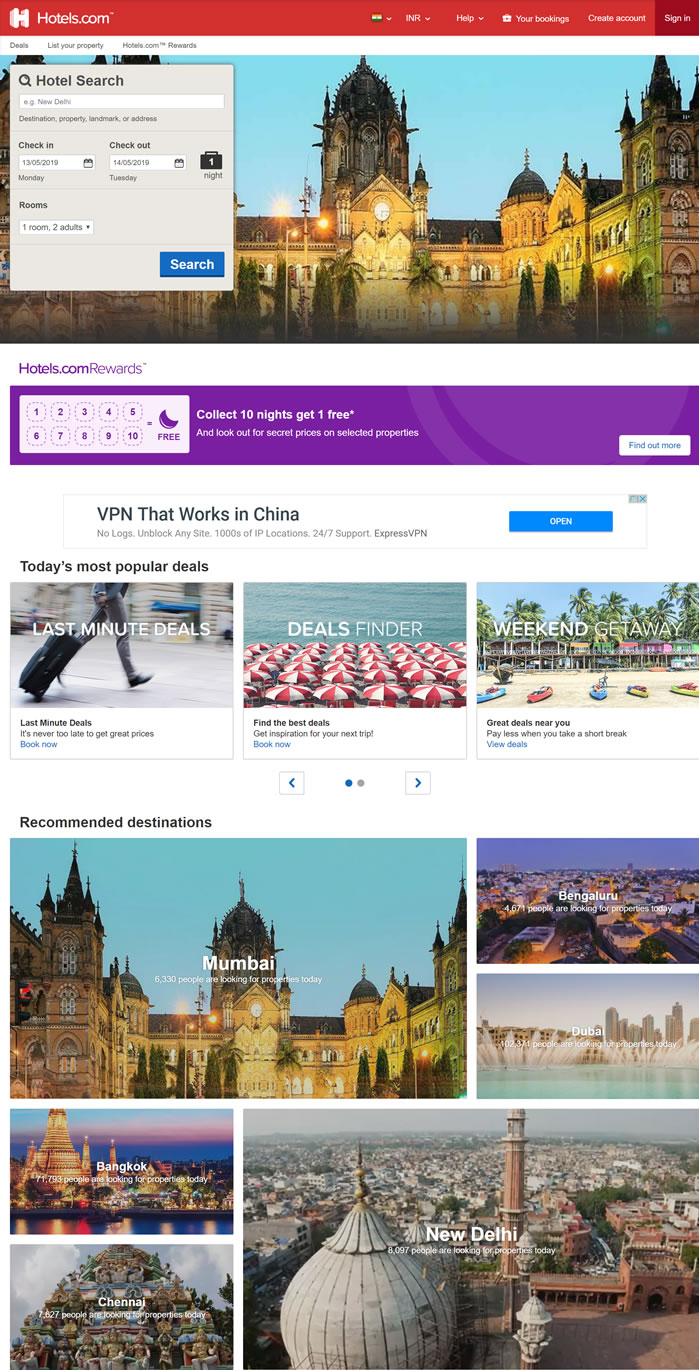 Hotels.com印度:https://in.hotels.com