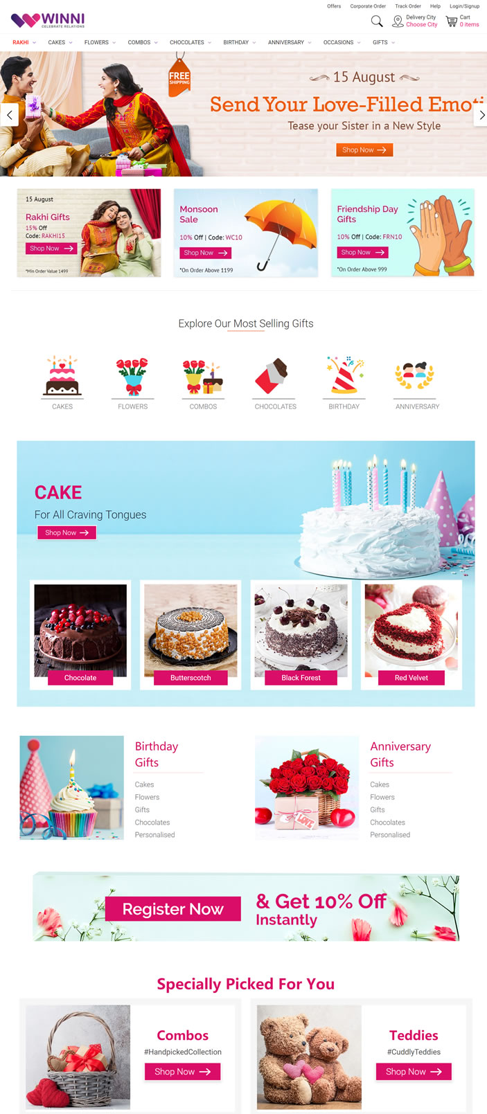 印度排名第一的蛋糕、鮮花和禮品送貨:Winni