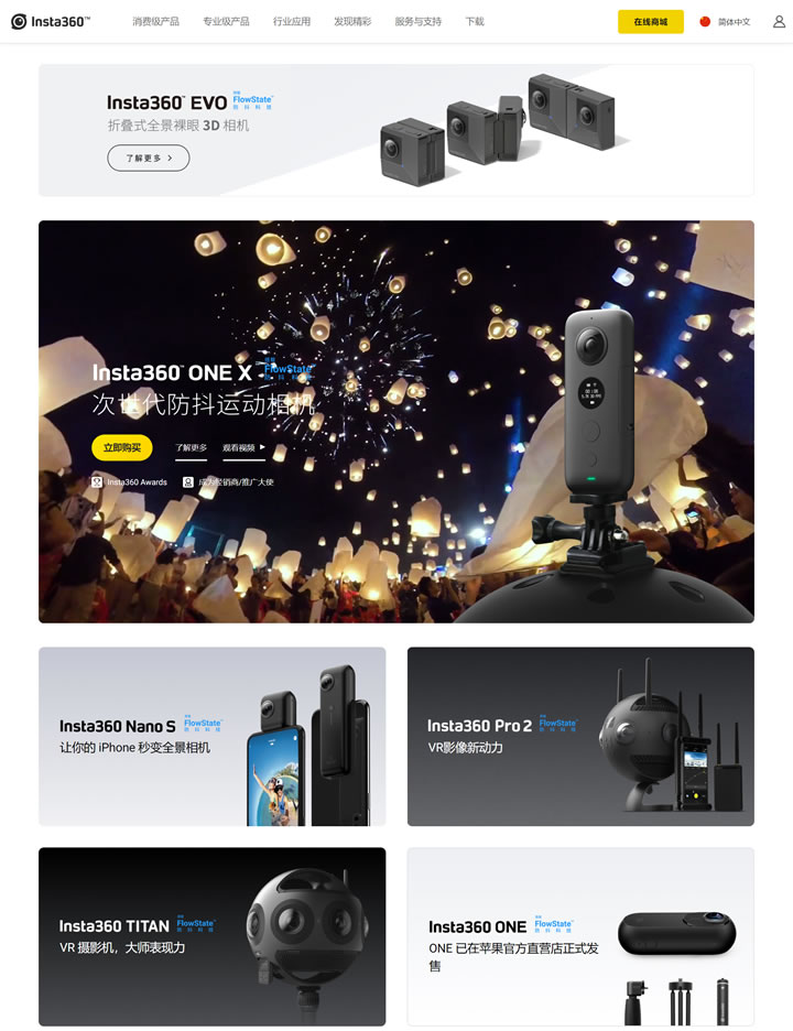 Insta360是全球領先的全景影像品牌,Insta360產品線覆蓋專業VR全景相機、運動相機和消費級全景相機,Insta360產品遠銷全球100多個國家和地區,是智能硬件領域的卓越企業。