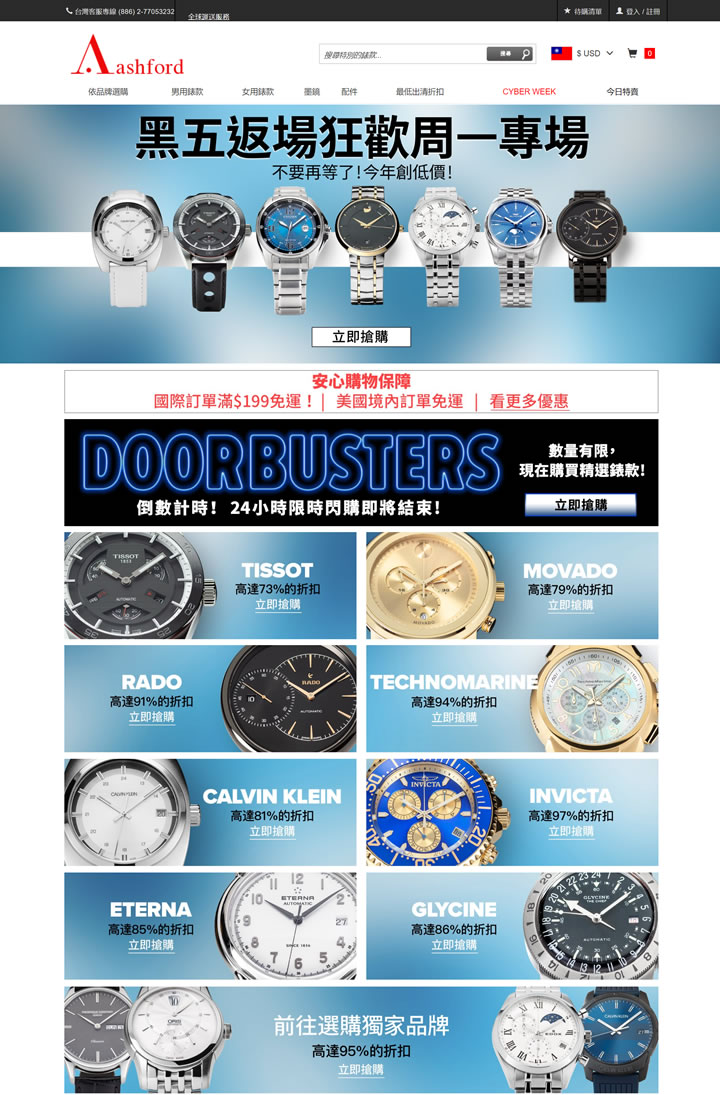 Ashford來自美國紐約,成立于1997年,是世界知名的名表珠寶在線商城。售賣70多個國際知名品牌,4000余款貨品。 Ashford是美國網(wǎng)絡(luò)零售商500強(qiáng)之一,并且是北美商業(yè)改善局網(wǎng)絡(luò)可靠性計(jì)劃的A+級會員。由于采取大批量采購庫存的買手制形式,消費(fèi)者總能在Ashford.com上面找到高性價比的手表及珠寶產(chǎn)品。