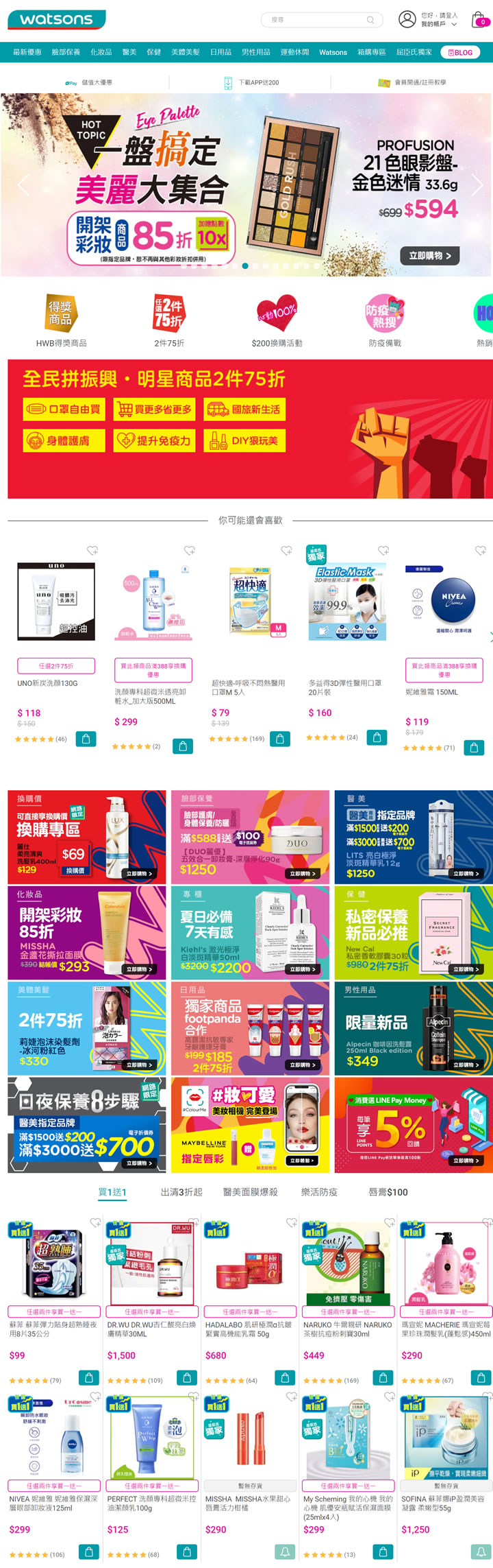 屈臣氏提供您最齊全、最專業的個人藥妝商品購物選擇。眾多保養、彩妝、醫美、保健與民生用品,寵愛會員消費累兌點、網路首購再送100,讓您擁有最快樂的購物體驗。
