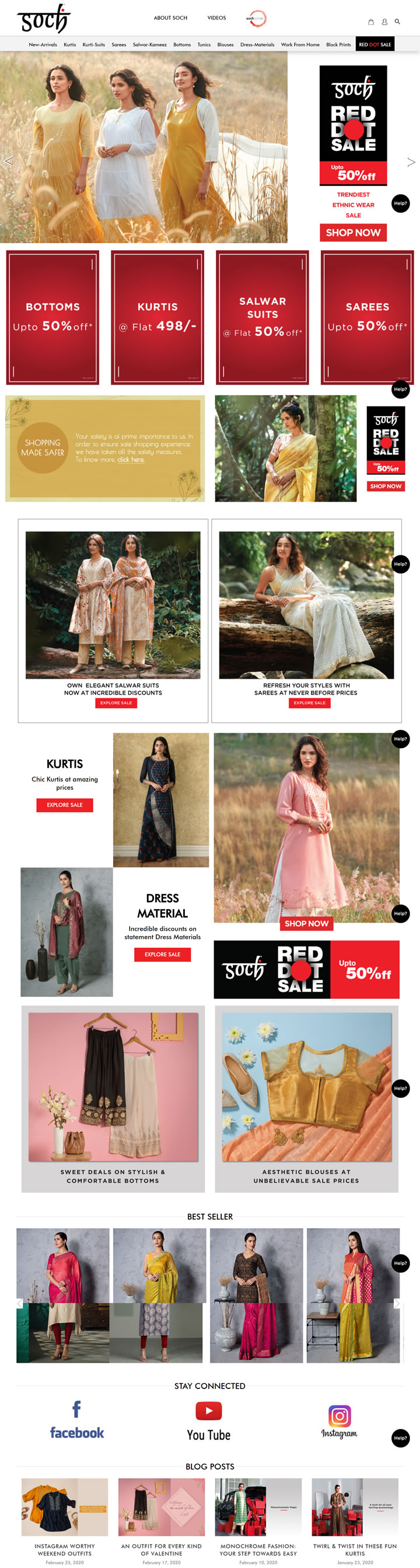 Soch代表著無與倫比的遺產。從設計師服裝到優雅時尚服裝,這是一個滿足您所有種族需求的一站式品牌。第一家Soch獨家專賣店于2005年開業。從那以后,每家專賣店都以現代詞匯反映了印度的手工藝。通過對傳統手工藝的創新使用,Soch通過現代生活方式慶祝印度女性。如今,Soch已通過遍布45個城市的124個獨家品牌網點發展為零售業務。