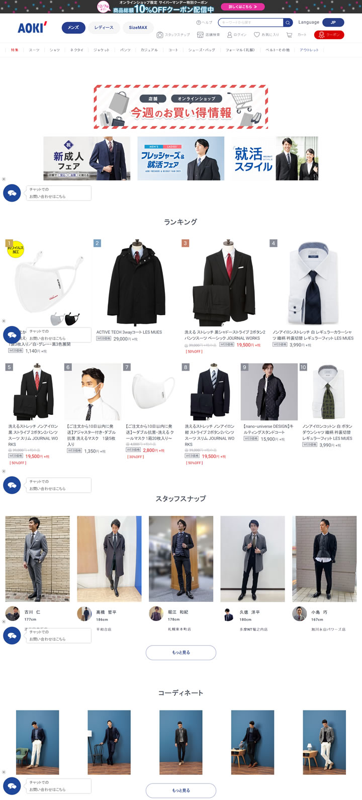 您的造型師店“ AOKI” – 從男士、女士的商務服裝到休閑、正式服裝都很齊全。