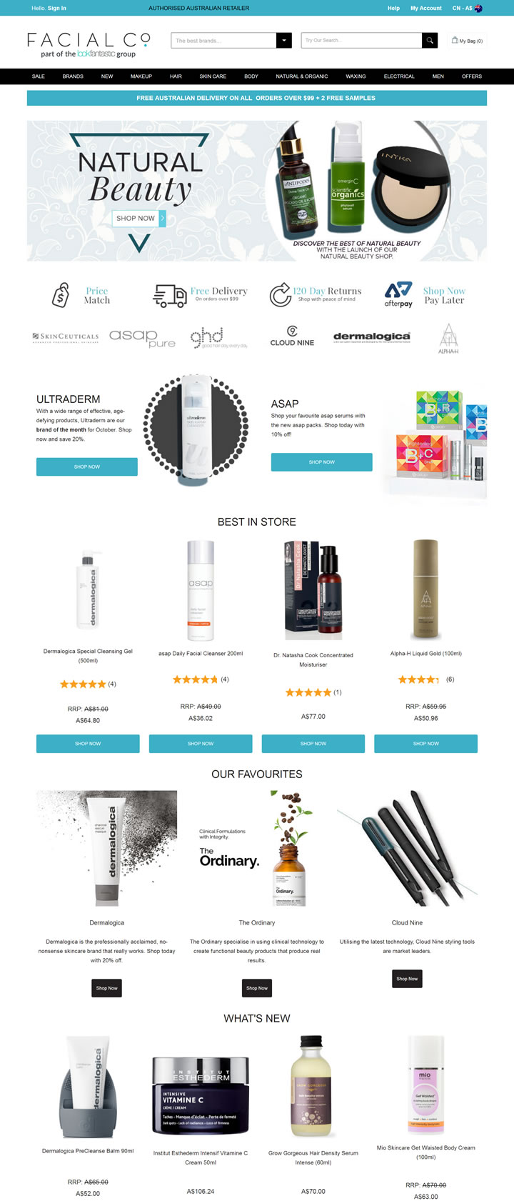 Facial Co.是澳大利亞領先的在線美容商店,一個擁有大量護膚品和化妝品牌的官方批發商。