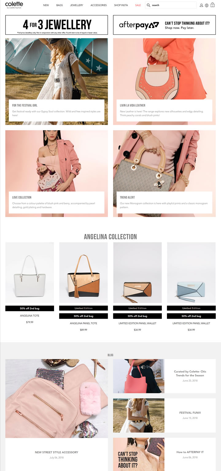 Colette by Colette Hayman是一個澳大利亞時尚配飾品牌,以快速時尚為代表,以實惠的價格提供有趣、時尚、實惠的手袋、錢包、時尚首飾、手鐲、項鏈、耳環和戒指。
