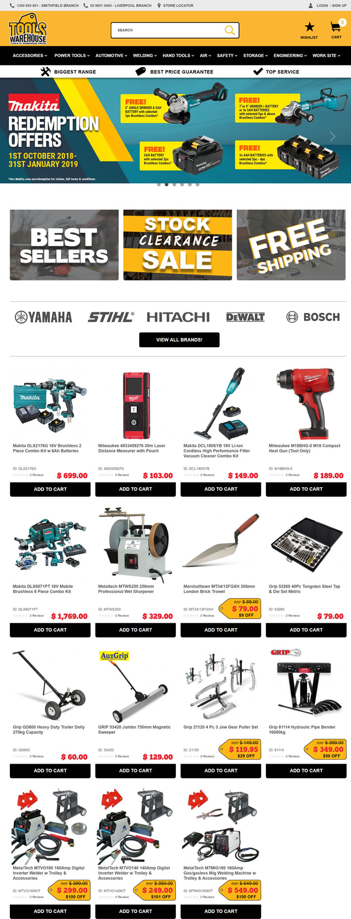 Tools Warehouse成立于2014年,隸屬于澳大利亞Toolbarn Pty有限公司,旨在滿足新興網絡市場的需求,并為了滿足廣大消費者對電動工具、手工工具、五金和機械的需求。我們的愿景是成為澳大利亞領先的獨立工具和機械零售商,并在網絡上占有重要地位。