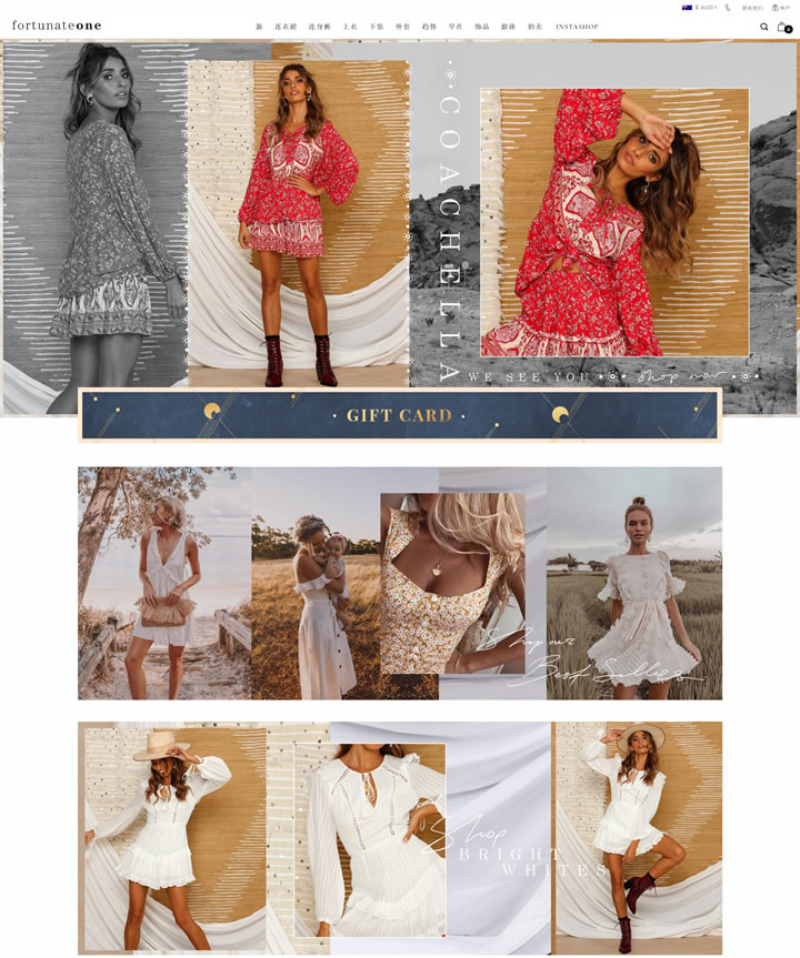 在線波西米亞風時裝、連衣裙和連體短褲購物。