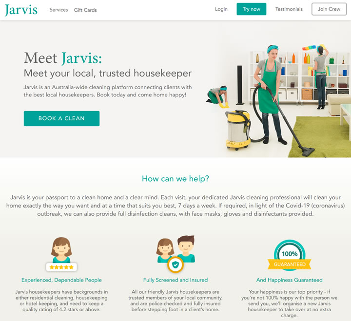 Jarvis是澳大利亞人信任的清潔平臺。同一位管家每周將管理您的房屋,因此您可以做更多。