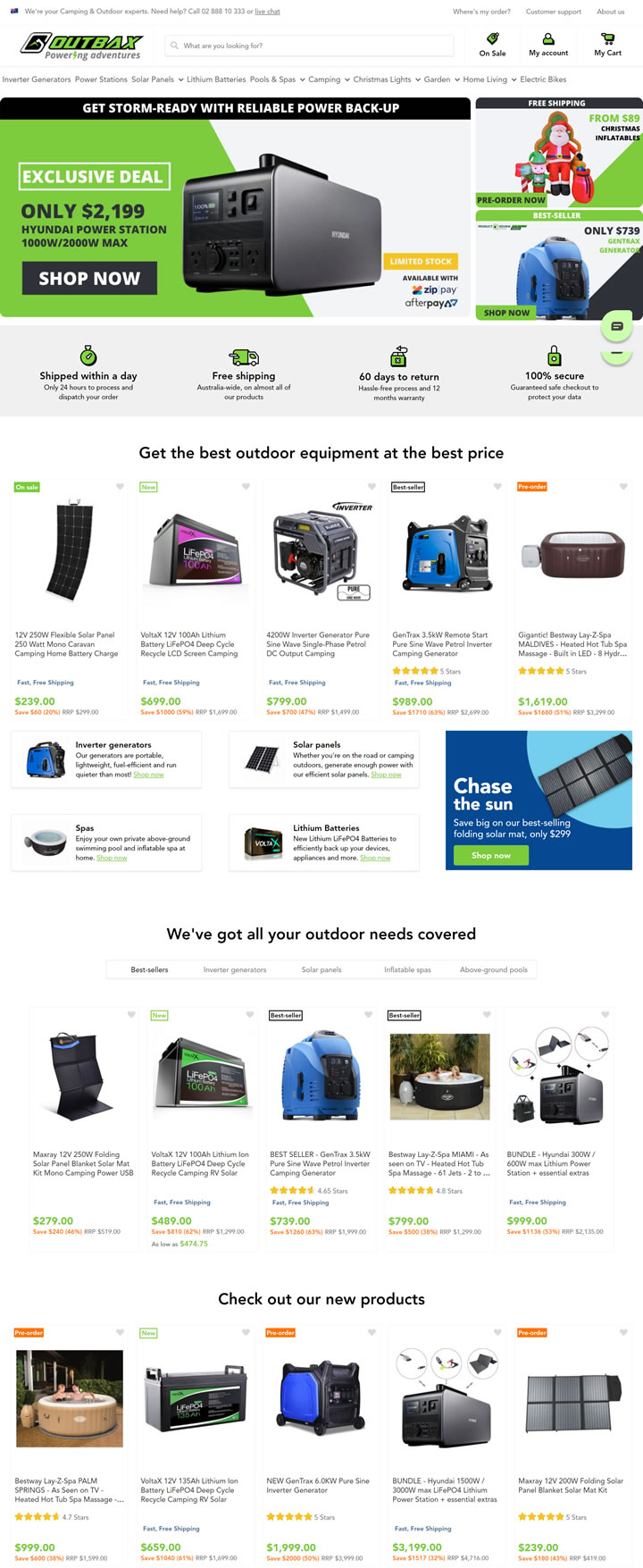 我們還提供各種產品來滿足您的日常需求,從充氣水療中心到電動工具,Outbax是您以實惠的價格獲得優質產品的一站式商店。