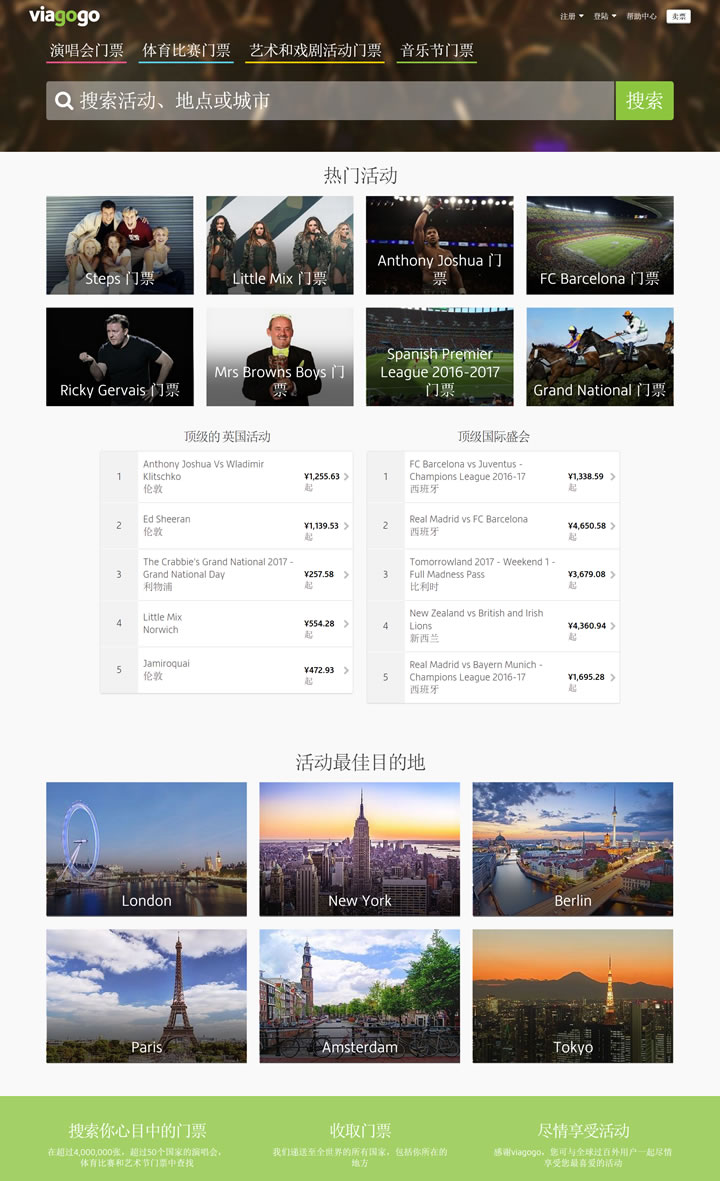 演唱會(huì)、體育比賽、戲劇門票,盡在viagogo在線票務(wù)平臺(tái)。100% 安全有保障地購(gòu)買和出售門票。