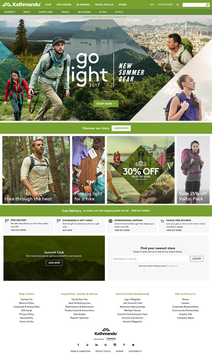 Kathmandu經營沖鋒衣,防水衣褲,保暖衣褲,登山戶外鞋,帳篷,以及各種登山運動附屬物品。為新西蘭、澳大利亞以及英國的火熱品牌,價格相對 The North Face、Columbia以及頂級新西蘭品牌macpac相比更低廉,性價比更高,適合大眾日常需求。