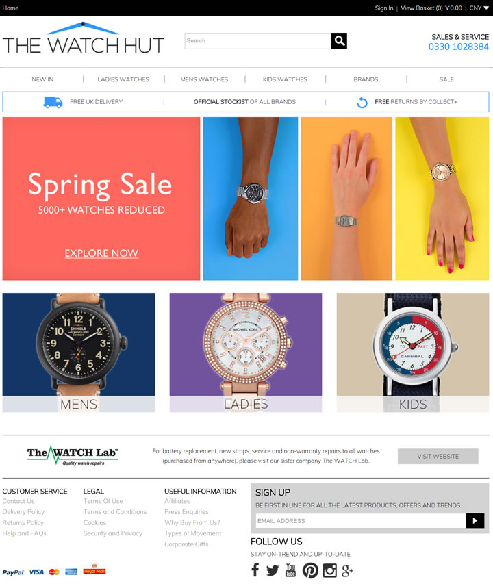 手表小屋(The Watch Hut)是英國最大的手表網站,成立于2005年。自成立起,它就逐漸發展為現在手表網站的第一品牌,為顧客提供大量的價格優惠、質量上乘的手表商品,成為英國領先的在線手表商店。