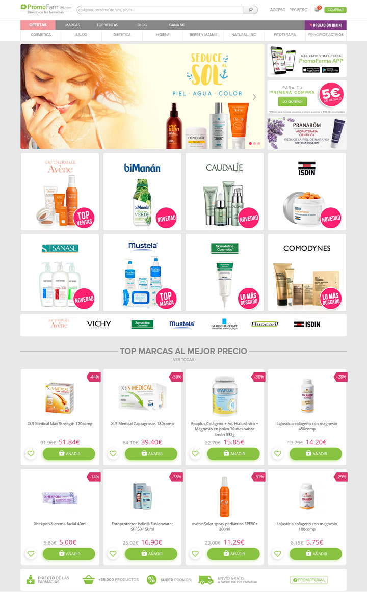 西班牙第一的網上藥房,超過35000種藥房的產品。
