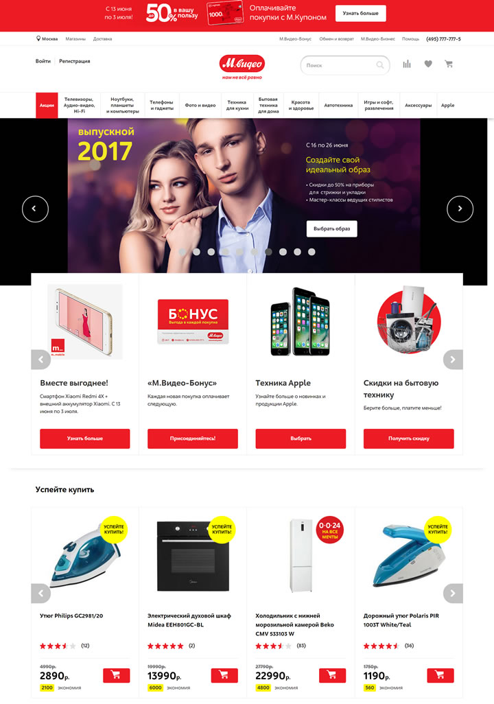 Mvideo于1995年在莫斯科注冊成立,目前在俄羅斯的143個城市擁有340家連鎖店,從營業收入上看,是俄羅斯最大的消費電子連鎖零售商。根據公開資料,2014年第一季度,Mvideo的整體銷售額增長8%,其中網絡零售增長了113%。其電商網站的主營類目包括電視、音像設備、電腦、手機、照相及攝像設備、家用工具、廚具、汽車用品、玩具等。