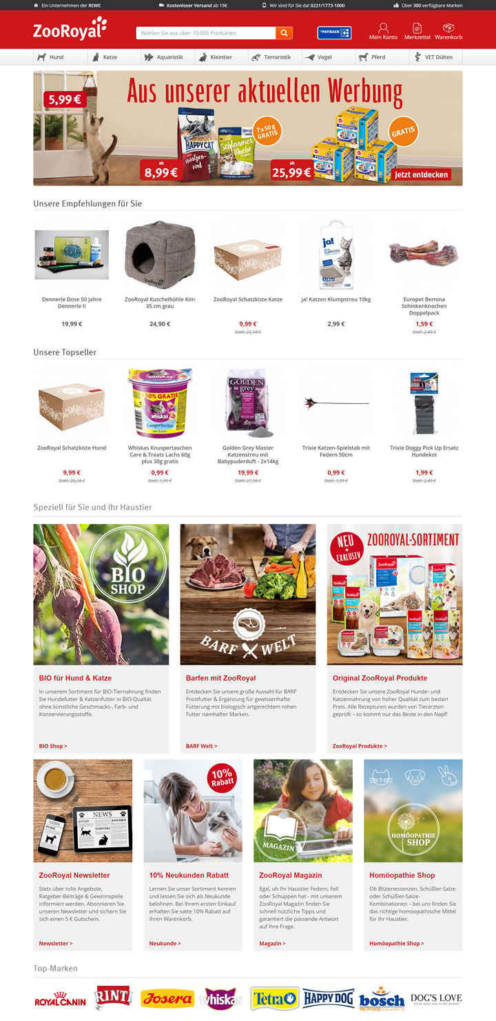 ZooRoyal是總部設在Würselen的德國第三大寵物食品和用品在線交易。ZooRoyal為狗、貓、小動物、爬行動物、馬提供食品和用品。