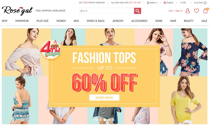 男女時(shí)尚與復(fù)古風(fēng)格在線購物:RoseGal(全球免費(fèi)送貨)