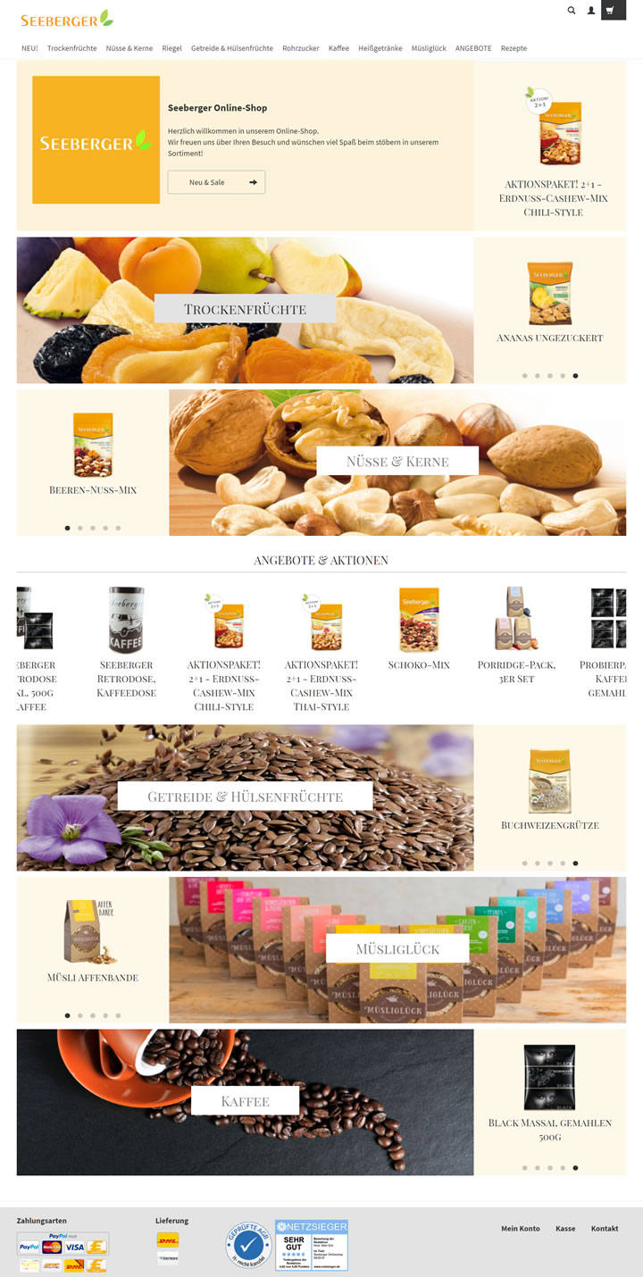 Seeberger網(wǎng)上商店提供健康的零食,烘焙原料谷物/豆類,熱飲和谷物。Seeberger在德國知名度很高,特別是其高品質(zhì)(通常為橙色包裝)。