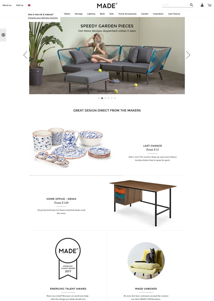 MADE.COM是位于英國倫敦的品牌,在線設計和零售家居用品和家具,并跨越網絡在歐洲有體驗展廳。