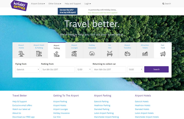 英國旅游額外服務(wù)市場領(lǐng)導(dǎo)者:Holiday Extras(機場停車場、酒店、接送等)