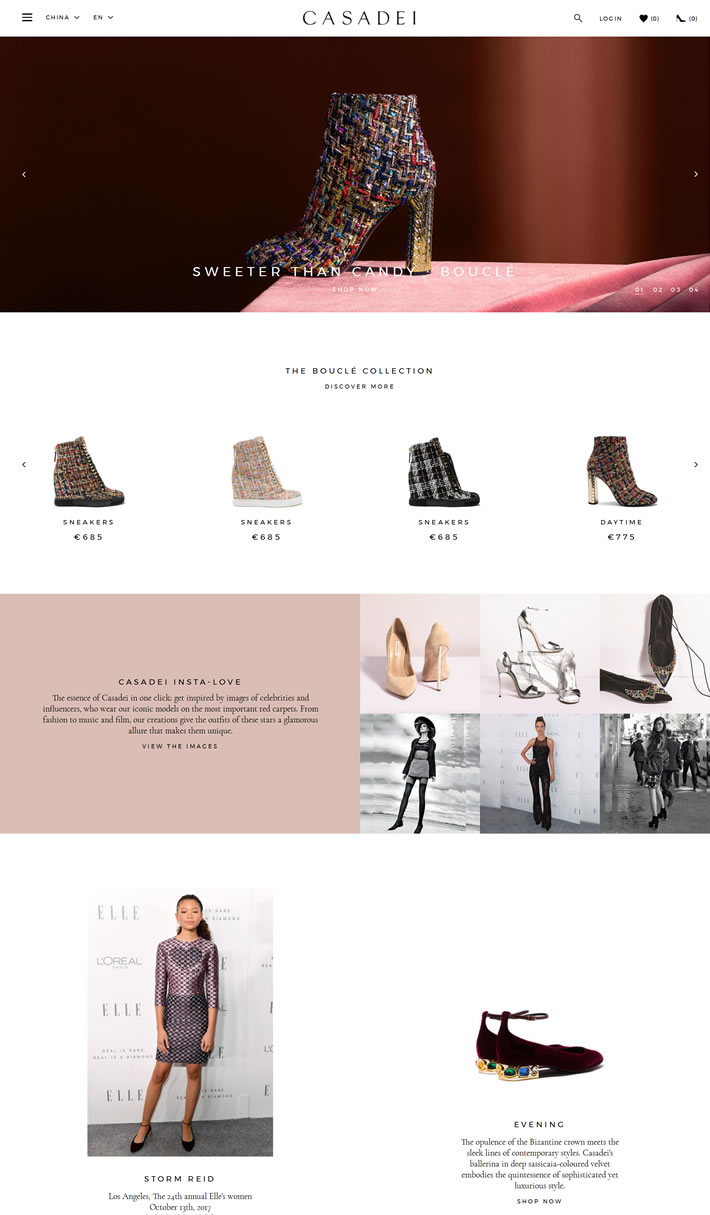 Casadei的設計師們總是將豐富的想象力與大膽的用料結合在一起,使每雙鞋子呈現出無窮的創新性。100%的意大利純手工縫制、特殊選材制作,經典技藝與現代元素相輔相成。鮮艷的顏色、性感的豹紋、炫目的鉆石、夸張的設計,加之獨特的幾何造型,讓每一雙鞋履都散發出眼花繚亂的時尚與風格,將美艷動人的女王氣場優雅地呈現。從歐美名流到好萊塢紅毯上的巨星,意大利的時尚品牌Casadei的影子總是令人矚目,它所呈現的自信、氣質以及時尚性都是許多大牌所不能超越的。