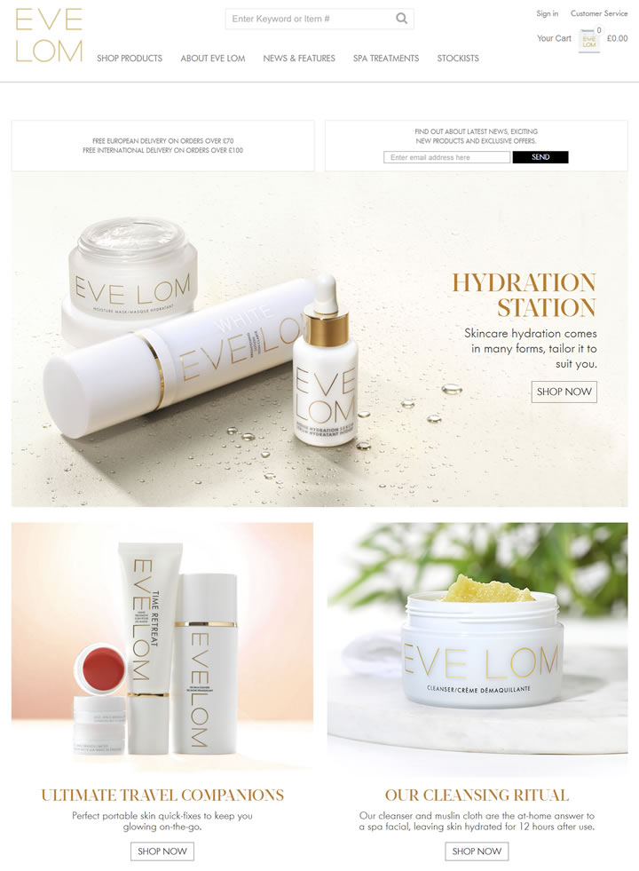 EVE LOM是來自英國知名美妝護膚品牌。主要包含有護手霜、眼部精華、潤唇膏、面膜、潔面、精華、面霜、其他美容工具類。由來自英國的護膚專家Eve Lom本人創造的品牌,Eve Lom正是以名為Eve Lom Cleanser的產品而馳名,被業界稱為“全世界最好的潔面膏”。
