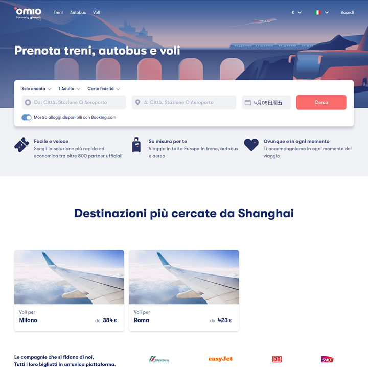Omio意大利:全歐洲低價(jià)大巴、火車和航班搜索和比價(jià)