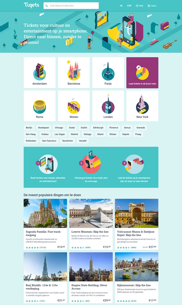 Tiqets出售歐洲最美麗的景點和博物館門票,如梵高博物館、國立博物館、圣家族教堂、艾菲爾鐵塔、盧浮宮博物館、羅馬斗獸場、倫敦音樂劇和許多著名景點。