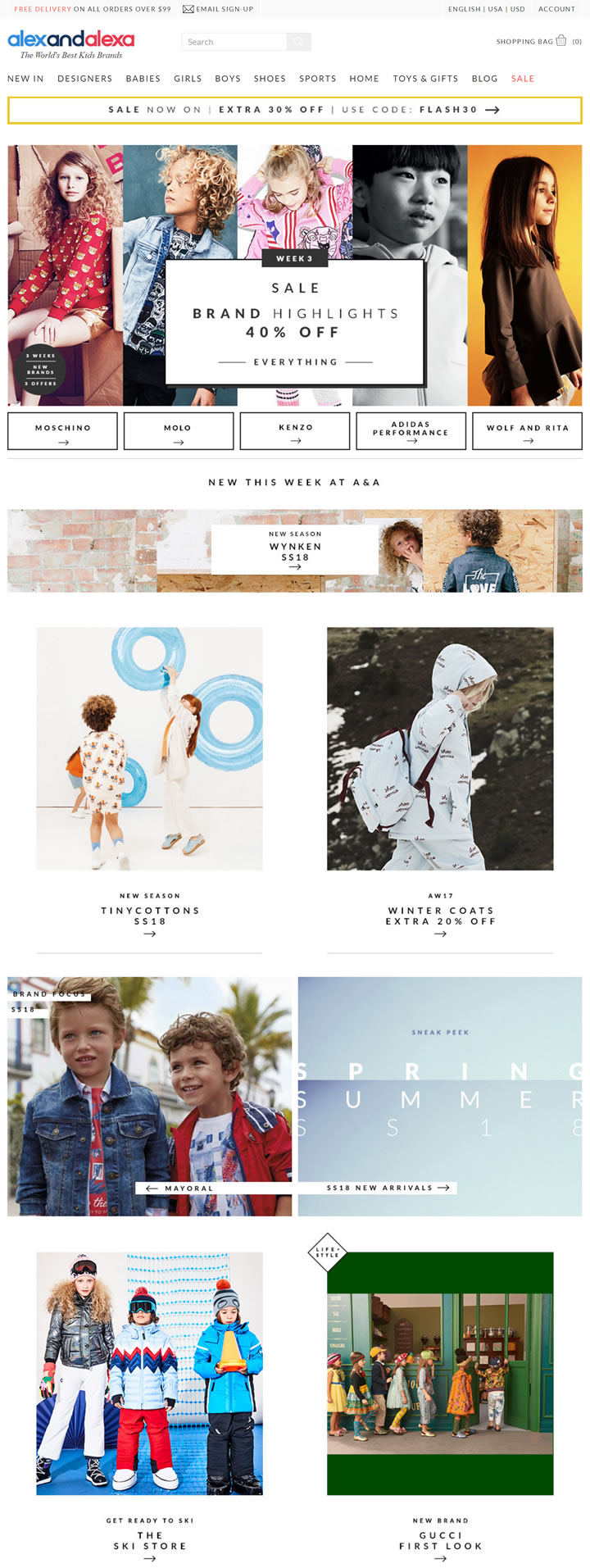 AlexandAlexa是一家來自英國專注世界著名兒童品牌服飾的線上商城。產品包括了適合0-13歲兒童的奢侈品牌時尚,運動服飾以及玩具等。熱銷品牌包括Burberry,Kenzo, Adidas, Nike等等。