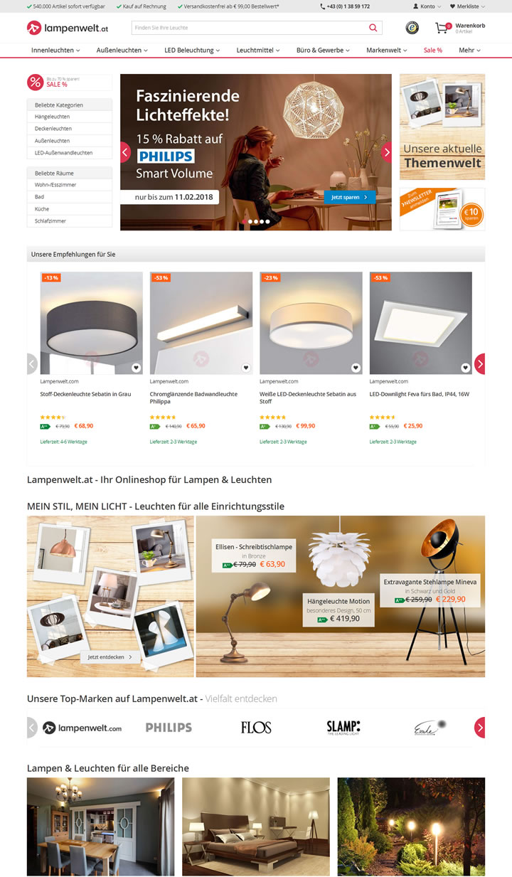 奧地利網上現代燈具和燈飾店:Lampenwelt.at
