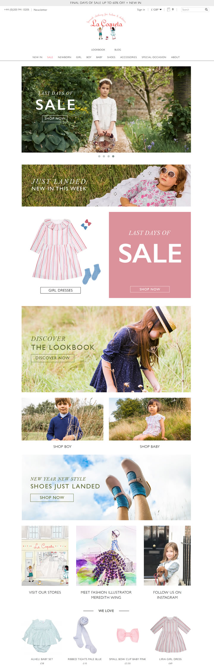 La Coqueta是倫敦一家西班牙童裝設計師服裝精品店,提供高品質的西班牙童裝。La Coqueta是一個為0個月至10歲的嬰兒和兒童設計的時尚品牌,于2013年成立,目的是促進和支持西班牙的設計和工藝。從布料的選擇到每件作品的設計和完成,每一個元素都是在西班牙制造。