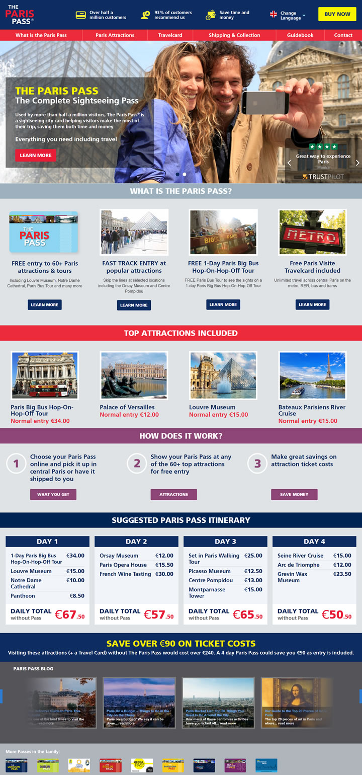 巴黎一票通(The Paris Pass)是終極觀光套餐,持有一票通即可進入巴黎60個多世界聞名的博物館、藝術館和紀念館。包括巴黎博物館通票(Paris Museum Pass)、巴黎景點通票(Paris Attraction Pass)和巴黎觀光通票(Paris Visite Pass),您可以購買2天、3, 4天或6天的固定期限通票。持有巴黎一票通即可輕松游覽巴黎。