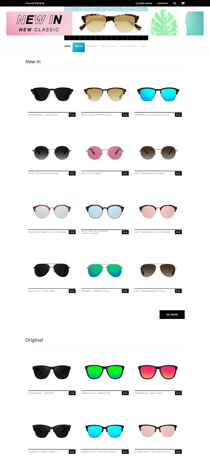 Hawkers,西班牙太陽鏡初創企業,Hawkers聚焦一種風格的眼鏡,然后通過鏡片和鏡框的顏色的組合來實現多樣化的效果。Hawker也與一些知名人士和品牌商進行合作,來打造獨特的太陽鏡風格,合作者包括洛杉磯湖人隊、零售商Pull&Bear、奔馳、PlayStation、潮流電音之王 Steve Aoki、科比布萊恩特和亞瑟小子等。