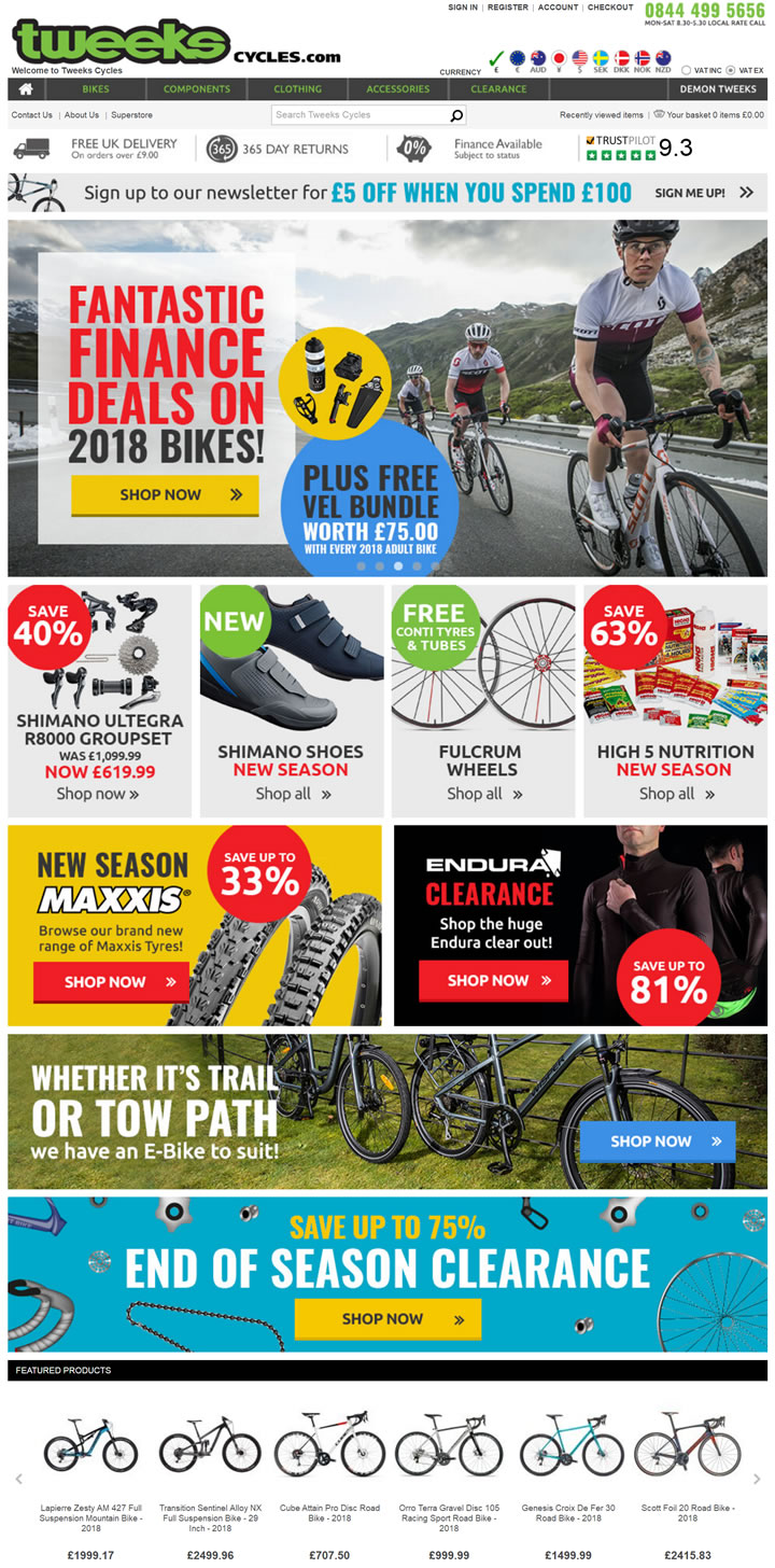 在Tweeks Cycles,騎行是我們的熱情。我們擁有一流的高品質(zhì)山地自行車、公路自行車、組件、自行車服裝和配件以及免費送貨,我們的產(chǎn)品系列適合所有喜歡騎自行車的人。