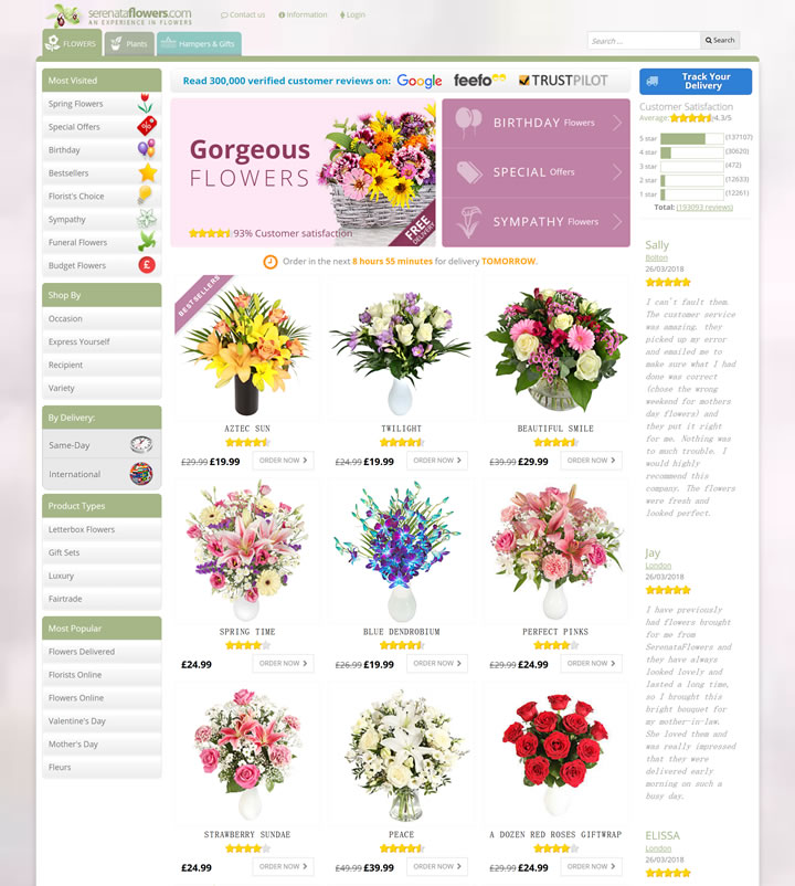 網上訂購鮮花,第二天免費送貨,周一至周日,當天送貨也可。鮮花由內部花店準備,由我們可靠的快遞員親手交付到英國任何地方。