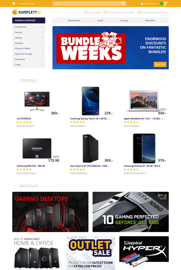 Komplett.ie是您所有電子產(chǎn)品的最佳選擇。低廉的價(jià)格,超過€400免費(fèi)送貨,以及友好的客戶服務(wù)。我們的主要產(chǎn)品是筆記本電腦、組件、臺(tái)式機(jī)、手機(jī)和平板電腦。