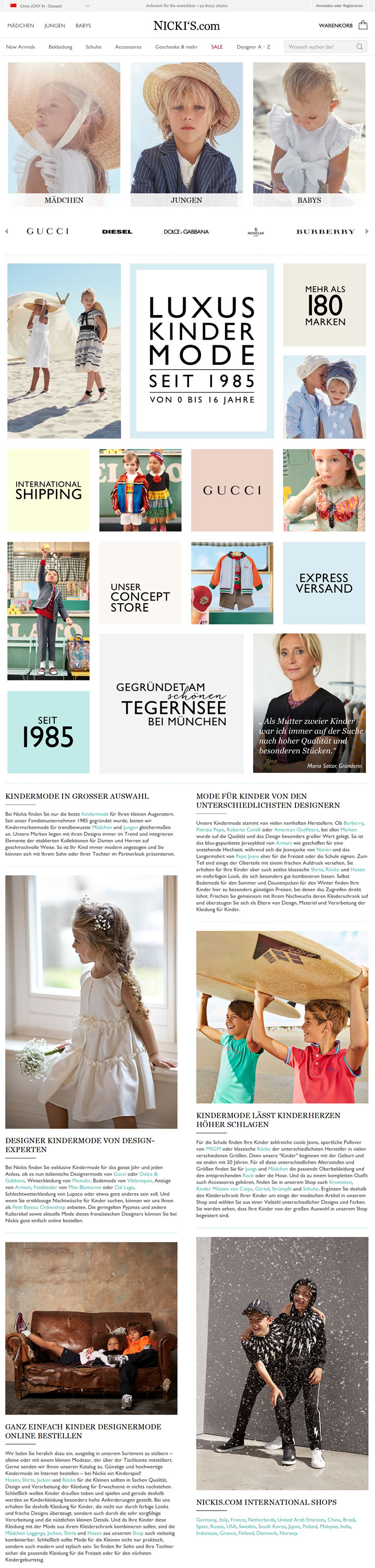 nickis.com是德國著名兒童時裝零售商之一,成立于1985年。其網上商店為男孩、女孩和嬰兒提供超過100家設計師品牌。
