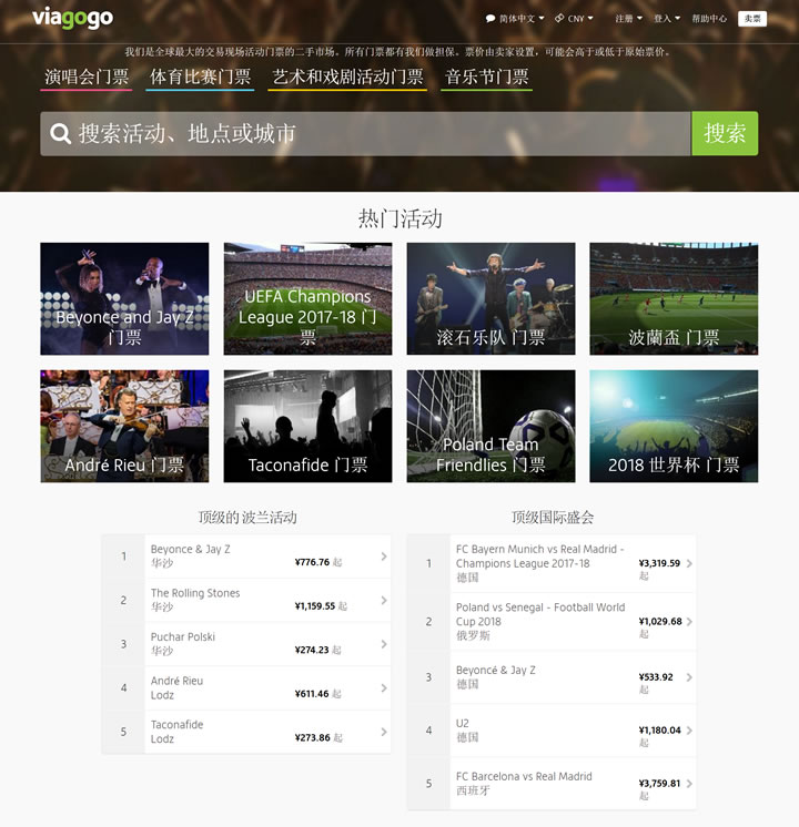 viagogo與眾多世界頂尖體育及娛樂品牌合作,并幫助來自幾乎全球各地的消費者,在他們的設備上,使用他們的語言和貨幣,購買他們最喜愛的活動的門票。