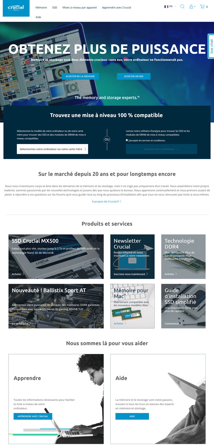Crucial是美光公司的一部分,美光公司是35年來世界上最早的計算機(jī)內(nèi)存制造商之一。內(nèi)存和存儲是他們的熱情,他們的使命是改變您的系統(tǒng)性能 – 以及您的計算機(jī)體驗。Crucial為大多數(shù)現(xiàn)有計算機(jī)提供內(nèi)存升級或SSD。使用免費兼容工具,可以非常簡單地找到適合計算機(jī)型號的內(nèi)存或SSD。開始在Crucial.fr上購買。