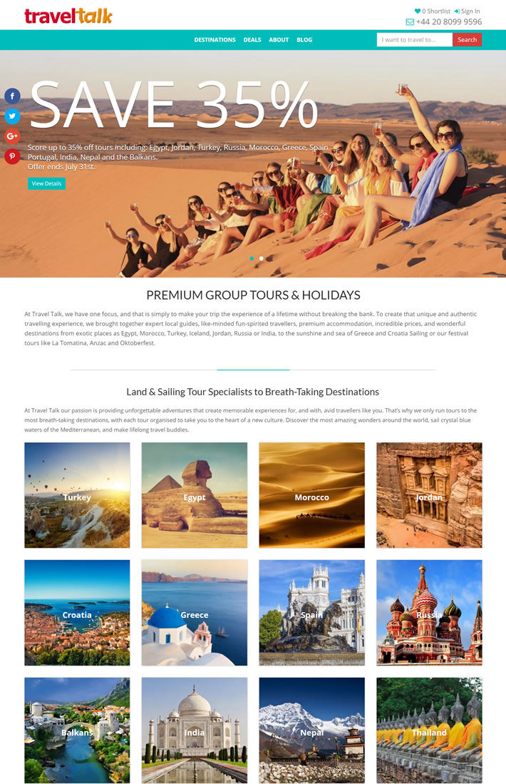 Travel Talk Tours是18-35歲年齡段的英國領(lǐng)先旅游運(yùn)營商之一。我們成立于2000年,我們經(jīng)營著埃及、摩洛哥、土耳其、約旦、俄羅斯、西班牙和葡萄牙等異國風(fēng)情旅游目的地,以及希臘帆船和帆克羅地亞的陽光和海洋,法國阿爾卑斯山的滑雪,節(jié)日旅游包括澳新軍團(tuán)紀(jì)念日、番茄大戰(zhàn)和啤酒節(jié)。