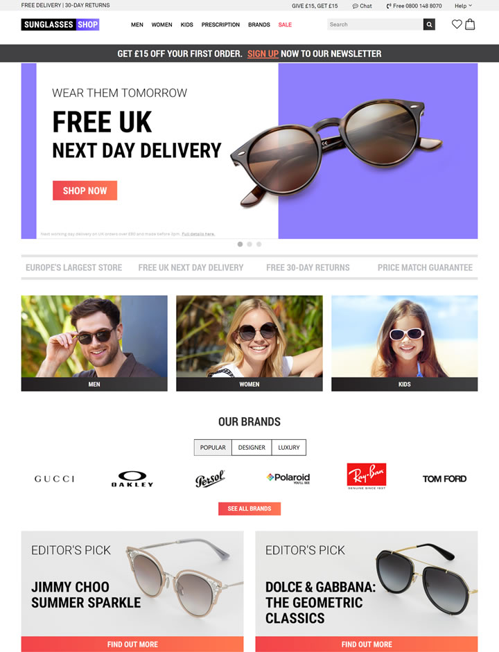 Sunglasses Shop是歐洲領(lǐng)先的太陽鏡在線供應(yīng)商之一。該商家擁有歐洲最大的眼鏡系列之一,其中包括Ray-Ban、Oakley和Carrera等品牌。