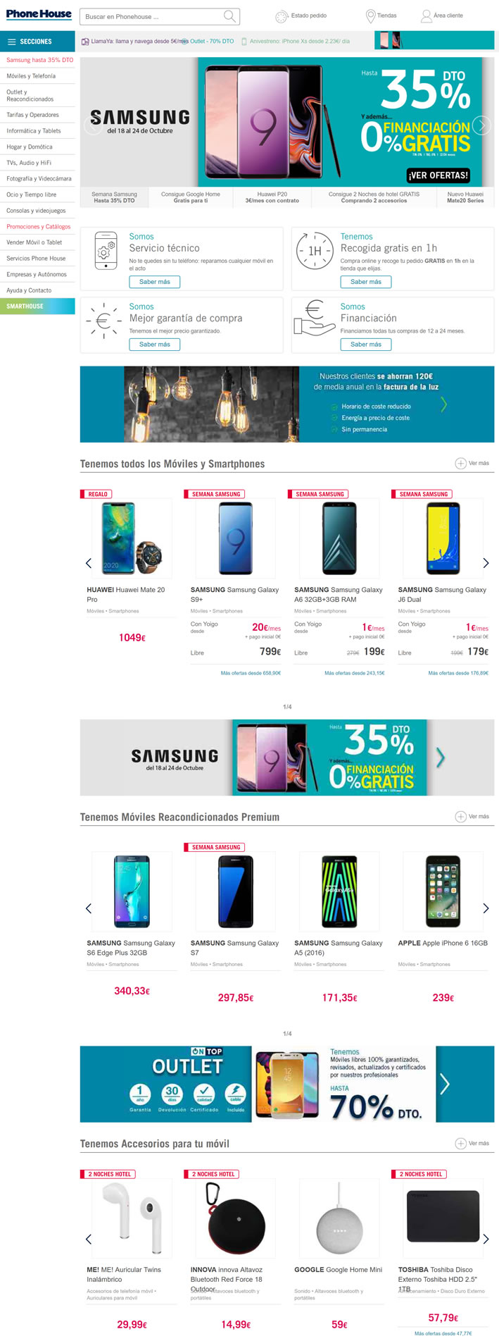 Phone House商店專門(mén)從事手機(jī)和配件。我們提供的品牌有蘋(píng)果iPhone、華為、三星、索尼、中興、努比亞、BQ、LG、阿爾卡特、小米、魅族、聯(lián)想等等!此外,我們有最完整的配件提供:屏幕保護(hù)膜、充電器、存儲(chǔ)卡、耳機(jī)、電池和手機(jī)所需的一切。