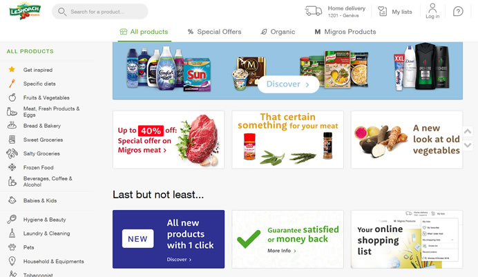 瑞士領(lǐng)先的網(wǎng)上超市,購買水果、蔬菜、肉類、雞蛋、面包、糕點(diǎn)、甜食、飲料、冷凍產(chǎn)品、護(hù)膚品、母嬰用品、寵物用品等。