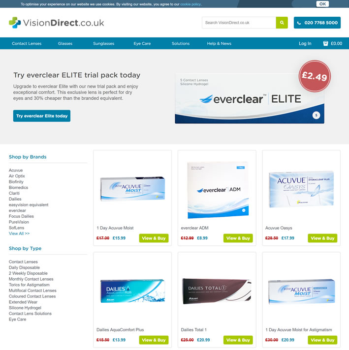 自1998年以來,VisionDirect.co.uk是第一家通過直接向客戶銷售來打破對(duì)隱形眼鏡壟斷的公司。與大街上的眼鏡商相比,我們的價(jià)格要便宜45%。我們銷售所有主要品牌,如Acuvue、Focus Dailies、Proclear、Biofinity、Soflens、Freshlook, 直接從英國和歐洲供應(yīng)商購買。