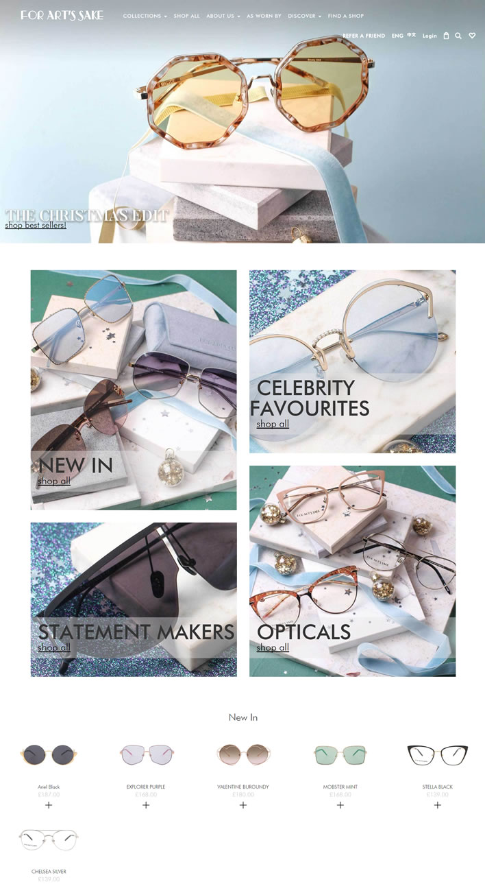 For Art’s Sake是一家位于倫敦的設計品牌,專注于時尚前衛眼鏡。該品牌的高級太陽鏡彰顯了現代女性的氣質,既輕松又優雅。手工制作,使用最好的材料和100%的紫外線保護。